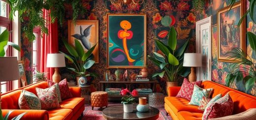 Stwórz uzależniający efekt poprzez połączenie etnicznych wzorów z geometrycznymi motywami. Możesz zastosować intensywne motywy azteckie lub marokańskie w większych elementach, takich jak narzuty czy dywany, a subtelniejsze kwiatowe wzory na poduszkach i dekoracjach ściennych. Pamiętaj, aby zachować równowagę między wzorami a kolorami; trzykolorowa paleta z neutralnym tłem pomoże utrzymać spójność aranżacji.